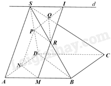 Khi đó, giả sử MR cắt d tại I, PI cắt SC tại Q. Suy ra, mặt phẳng \(\left( \alpha  \right)\) là (MNPI).
