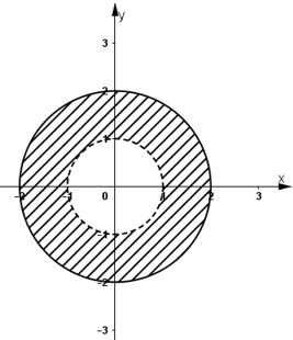 Vậy tập hợp điểm biểu diễn số phức z là phần nằm giữa đường tròn tâm \(O\), bán kính bằng \(1\) (không kể điểm trên đường tròn này) và đường tròn tâm \(O\), bán kính bằng \(2\) (kể cả các điểm trên đường tròn này).