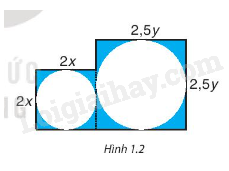 Tổng diện tích hai hình tròn cắt ra là \({\left( {2x} \right)^2}.\pi + {\left( {2,5y} \right)^2}.\pi = 4\pi {x^2}\; + 6,25\pi {y^2}.\)