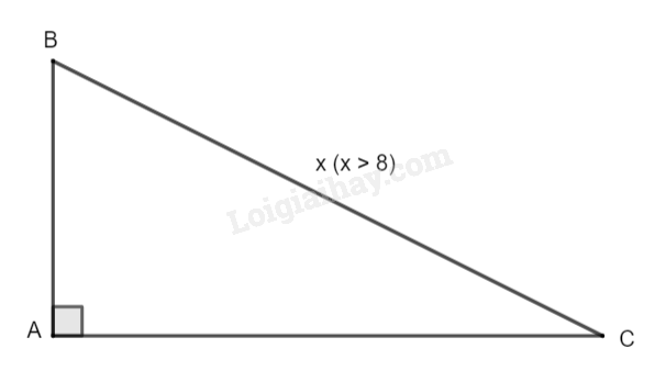 Bước 1: Đặc cạnh huyền của tam giác là x (\(x > 8\)), xác định các cạnh còn lại qua mối quan hệ với cạnh huyền
