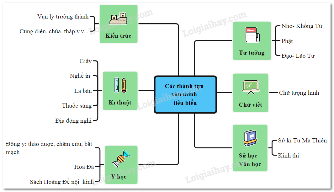 Lập sơ đồ tư duy về các thành tựu của văn minh Trung Quốc theo mẫu dưới đây.