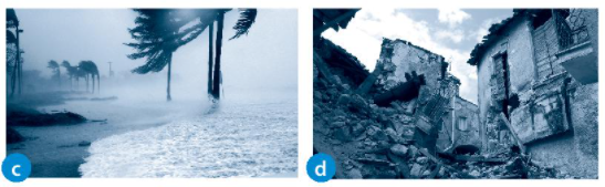 – Hình thể hiện hậu quả của động đất: a, b, d.