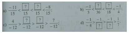 a)     \(\frac{-11}{15}< \frac{-10}{15}< \frac{-9}{15}< \frac{-8}{15}\)