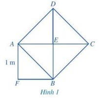 Quan sát Hình 1, ở đó hình vuông AEBF có cạnh bằng 1 m, hình vuông ABCD có cạnh AB là một đường chéo của hình vuông AEBF.