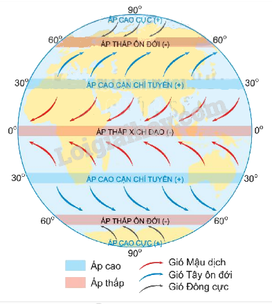 Hình 5. Các đai khí áp và gió thổi thường xuyên trên Trái Đất