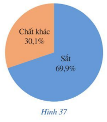 Quan sát biểu đồ ở Hình 37 để đưa ra tỉ lệ sắt (%) trong quặng hematite.