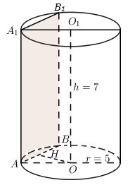 Một hình trụ có bán kính đáy r = 5cm và có khoảng cách giữa hai đáy bằng 7 cm.