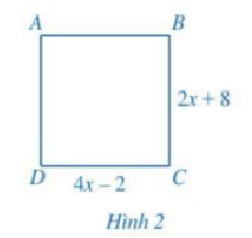 Tìm \(x\), biết tứ giác \(ABCD\) là hình vuông (Hình 2).