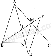 b) Gọi I là giao điểm của AN và BM. Trên tia đối của tia NA lấy điểm E sao cho \(NE = NI\). Trên tia đối của tia MB lấy điểm F sao cho \(MF = MI\). Chứng minh EF//AB.
