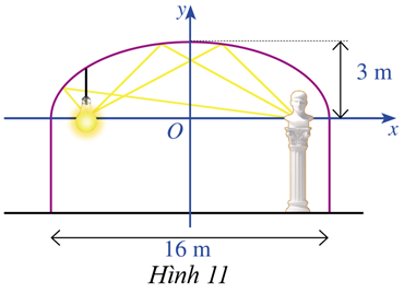 b) Một nguồn sáng được đặt tại tiêu điểm thứ nhất của elip. Cần đặt bức tượng ở vị trí có tọa độ nào để bức tượng sáng rõ nhất? Giả thiết rằng vòm trần phản xạ ánh sáng. Biết rằng, một tia sáng xuất phát từ một tiêu điểm của elip, sau khi phản xạ tại elip thì sẽ đi qua tiêu điểm còn lại