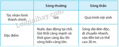 Hãy hoàn thành bảng theo mẫu sau để so sánh giữa sóng thường và sóng thần.