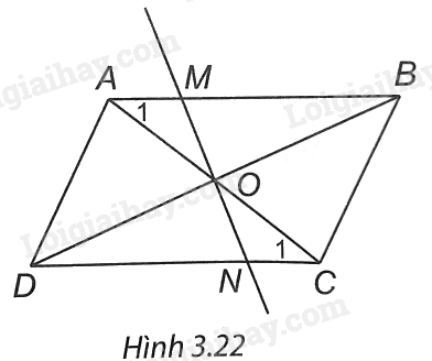 Xét ∆OAM và ∆OCN có: \(\widehat {OAM} = \widehat {OCN}\) (hai góc so le trong), \(\widehat {AOM} = \widehat {CON}\) (hai góc đối đỉnh), AO = CO nên ∆OAM = ∆OCN (g.c.g).