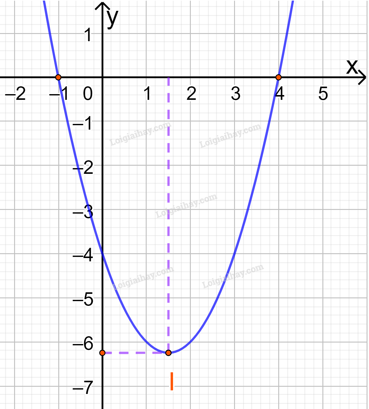 Điểm đối xứng với điểm (0;-4) qua trục đối xứng \(x = \frac{3}{2}\) là (3;-4)