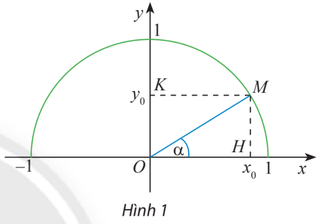 Do đó: \(\sin \alpha  = \frac{{MH}}{{OM}} = MH;\;\cos \alpha  = \frac{{OH}}{{OM}} = OH.\)