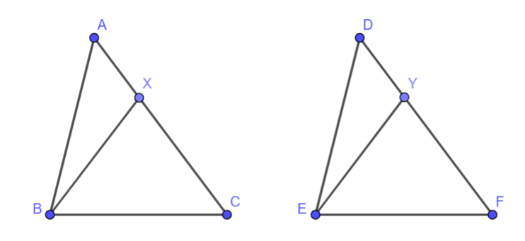 \(\Delta ABC = \Delta DEF,X \in AC,Y \in DF,AX = DY\)