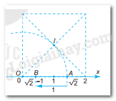 Do đó, muốn có điểm B biểu diễn số \(\sqrt 2  – 1\), từ điểm A, ta di chuyển 1 đơn vị theo chiều âm như hình bên.