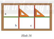 Cặp cạnh nào của các ô cửa sổ (Hình 16) vuông góc với nhau? Hãy dùng kí hiệu vuông góc để biểu diễn chúng.