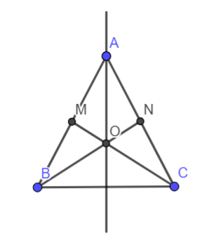 Bài 5. Cho tam giác ABC cân tại A. Gọi M, N lần lượt là trung điểm AB, AC. Gọi O là giao diểm của đường thẳng BN và CM. Chứng minh rằng O nằm trên đường trung trực của đoạn thẳng BC.