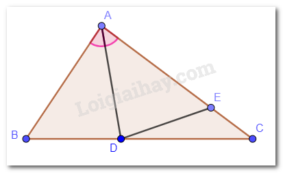 Cho tam giác ABC có \(\widehat B > \widehat C\). Tia phân giác góc BAC cắt cạnh BC tại điểm D.