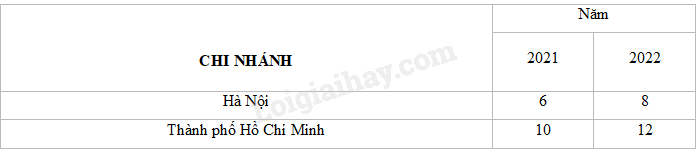 Doanh thu (đơn vị: tỉ đồng) của hai chi nhánh một công ty trong năm 2021 và 2022 được cho trong bảng sau: