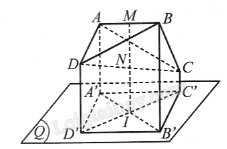 Do phép chiếu song song không làm thay đổi tỉ số giữa các đoạn thẳng cùng nằm trên 1 đường thẳng, nên do \(M\) là trung điểm của \(AB\) nên \(I\) là trung điểm của \(A’B’\). Tương tự, \(I\) là trung điểm của \(C’D’\). Suy ra \(A’C’B’D’\) là hình bình hành.