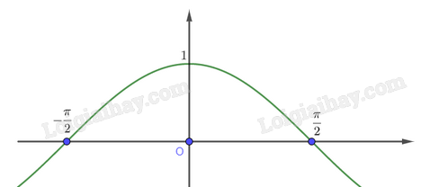 Đồ thị hàm số \(y = \cos x\) trên khoảng \(\left( { – \frac{\pi }{2};\frac{\pi }{2}} \right)\) được vẽ như hình dưới đây.
