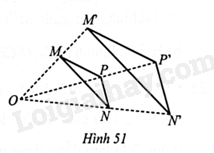 Cho điểm \(O\) nằm ngoài tam giác \(MNP\). Trên các tia \(OM,ON,OP\) ta lần lượt lấy các điểm \(M’,N’,P’\) sao cho \(\frac{{OM’}}{{OM}} = \frac{{ON’}}{{ON}} = \frac{{OP’}}{{OP}} = \frac{5}{3}\) (Hình 51).