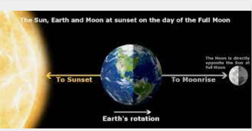 Vẽ sơ đồ mô tả vị trí Trái Đất, Mặt Trăng, Mặt Trời khi ta nhìn thấy trăng tròn.
