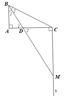 Cho tam giác ABC vuông tại A (AB < AC), BD là tia phân giác của góc ABC (D ∈ AC). Qua C kẻ tia Cx vuông góc với AC cắt BD tại M.