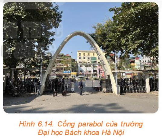Hai bạn An và Bình trao đổi với nhau. An nói: Tớ đọc ở một tài liệu thấy nói rằng cồng Trường Đại học Bách khoa Hà Nội (H.6.14) có dạng một parabol, khoảng cách giữa hai chân cổng là 8 m