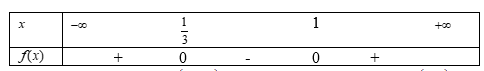 Suy ra \(f(x) > 0\)với mọi \(x \in \left( { – \infty ;\frac{1}{3}} \right) \cup \left( {1; + \infty } \right)\) và \(f(x) < 0\)với mọi \(x \in \left( {\frac{1}{3};1} \right)\)