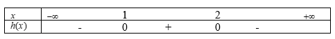 Suy ra \(h(x) > 0\) với mọi \(x \in (1;2)\)và \(h(x) < 0\)với mọi \(x \in ( – \infty ;1) \cup (2; + \infty )\)