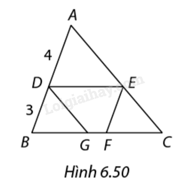 Trong hình 6.50, cho \(DE\) song song với \(BC,DG\) song song với \(AC\)