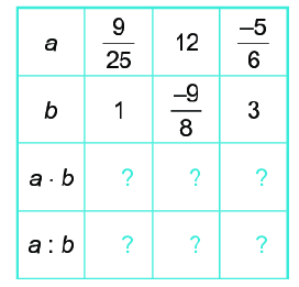 \(\begin{array}{l}a.b = 12.\dfrac{{ – 9}}{8} = \dfrac{{12.\left( { – 9} \right)}}{{.8}} = \dfrac{{ – 27}}{2}\\a:b = 12:\dfrac{{ – 9}}{8} = 12.\dfrac{8}{{ – 9}} = \dfrac{{12.8}}{{ – 9}} = \dfrac{{ – 32}}{3}\end{array}\)