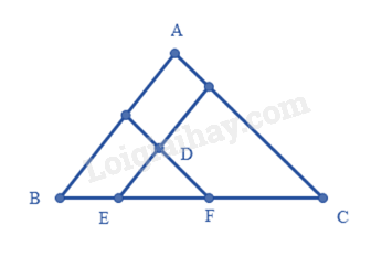 và \(F\)). Đường thẳng qua \(E\) song song với \(AB\) và đường thẳng qua \(F\) song song với \(AC\) cắt nhau tại \(D\). Chứng minh rẳng tam giác \(DEF\) đồng dạng với tam giác \(ABC\)