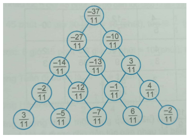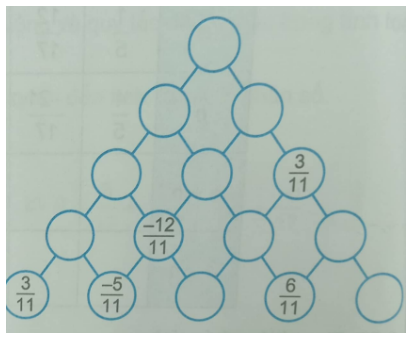 Em hãy điền phân số thích hợp vào ô trống để hoàn thiện sơ đồ sau, biết số trong mỗi ô trống ở hàng trên bằng tổng của hai số kề nó ở hàng dưới.