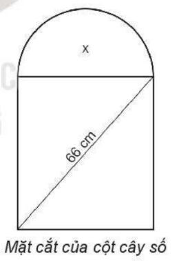Mặt cắt đứng của cột cây số trên quốc lộ có dạng nửa hình tròn ở phía trên và phía dưới có dạng hình chữ nhật (xem hình bên). Biết rằng đường kính của nửa hình tròn cũng là cạnh phía trên của hình chữ nhật và đường chéo của hình chữ nhật có độ dài 66 cm. Tìm kích thước của hình chữ nhật, biết rằng diện tích của phần nửa hình tròn bằng 0,3 lần diện tích của phần hình chữ nhật. Lấy \(\pi  = 3,14\) và làm tròn kết quả đến chữ số thập phân thứ hai.
