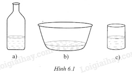 Quan sát hình minh hoạ 6.1, hãy dự đoán sau ba ngày lượng nước ở vật dụng nào còn nhiều nhất, ở vật dụng nào còn ít nhất. Biết ba vật dụng chứa cùng một lượng nước, đặt ở cùng một vị trí, trong cùng điều kiện môi trường.