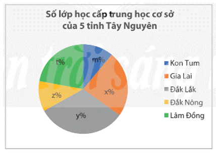 Biểu đồ hình quạt tròn ngoài việc cho ta biết sự so sánh hơn kém về số lớp học cấp trung học cơ sở của 5 tỉnh Tây Nguyên, còn cho biết tỉ lệ phần trăm số lớp học của mỗi tỉnh so với toàn thể khu vực.