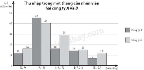 Thống kê lại thu nhập trong một tháng của nhân viên hai công ty A và B (đơn vị: triệu đồng) được thể hiện trong biểu đồ dưới đây.