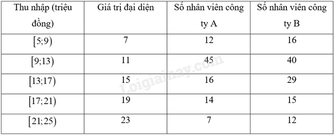 Ta có bảng thống kê thu nhập của nhân viên hai công ty như sau: