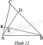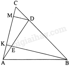 \(\frac{{AK}}{{KM}} = \frac{{AE}}{{ED}} = \frac{1}{2}\), suy ra \(AK = \frac{1}{2}KM\)
