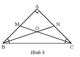 Cho tam giác ABC vuông cân tại A. Tia phân giác của góc B cắt AC tại N, tia phân giác của góc C cắt AB tại M. Gọi O là giao điểm của BN và CM.