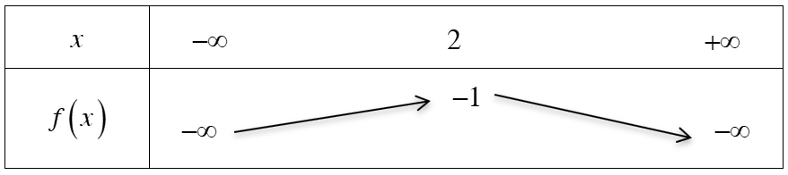 Từ đồ thị hàm số ta thấy rằng, parabol quay bề lõm xuống dưới và có đỉnh \(S\left( {2; – 1} \right)\) nên có bảng biến thiên như sau: