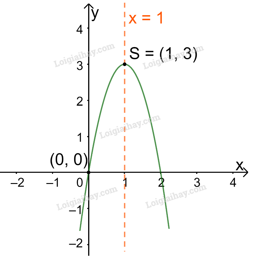 + Có đỉnh S với hoành độ: \({x_S} = \frac{{ – b}}{{2a}} = \frac{{ – 6}}{{2.( – 3)}} = 1;{y_S} =  – {3.1^2} + 6.1 = 3\)
