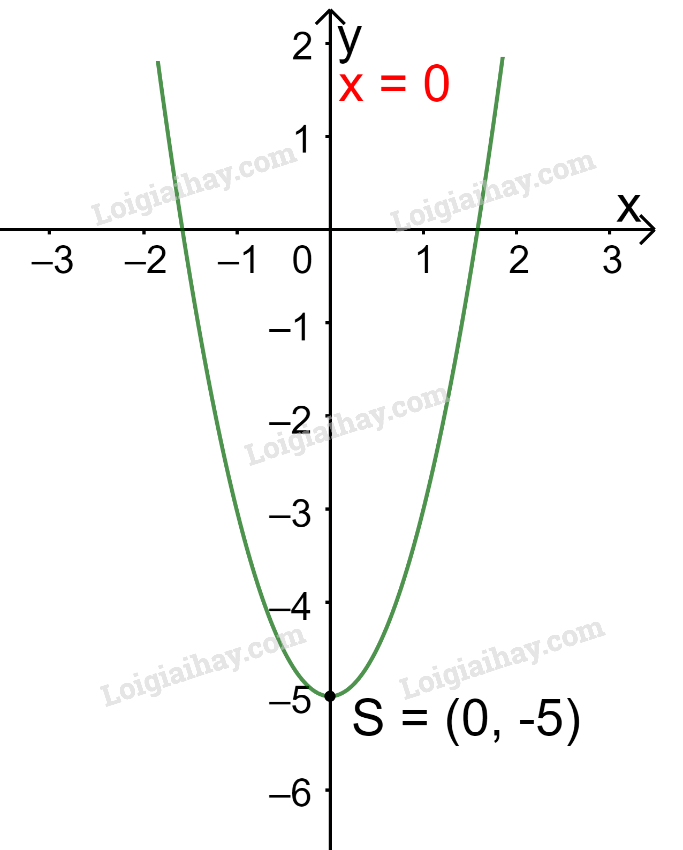 + Có đỉnh S với hoành độ: \({x_S} = \frac{{ – b}}{{2a}} = \frac{{ – 0}}{{2.2}} = 0;{y_S} = {2.0^2} – 5 =  – 5.\)