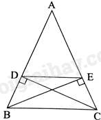 Cho tam giác ABC cân tại A, có hai đường cao BE và CD \(\left( {D \in AB,E \in AC} \right)\). Chứng minh tứ giác BDEC là hình thang cân.
