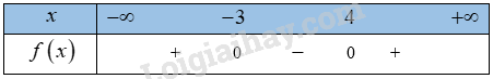 => \(f\left( x \right)\) có 2 nghiệm \(x =  – 3,x = 4\)