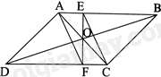 Cho hình bình hành ABCD. Vẽ hình bình hành AECF \(\left( {E \in AB,F \in CD} \right)\). Chứng minh rằng ba đường thẳng EF, AC, BD đồng quy.