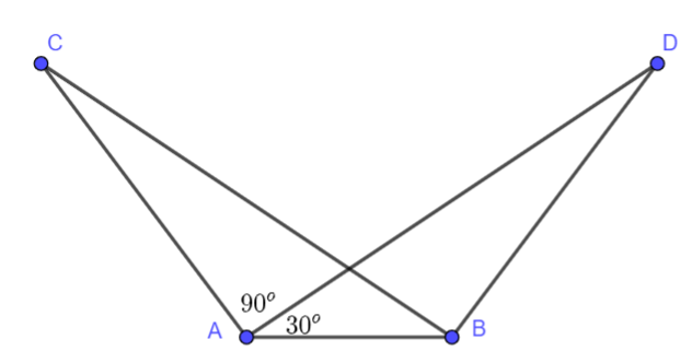 Từ đây suy ra \(\widehat {ABC} = \widehat {DAB} = {30^o},\widehat {ABD} = \widehat {CAB} = {120^o}\)